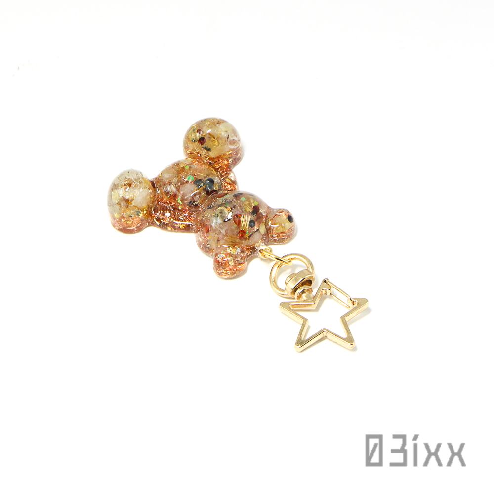 半立体で可愛らしく仕上げたクマ型オルゴナイトをキーホルダーに仕立てました。