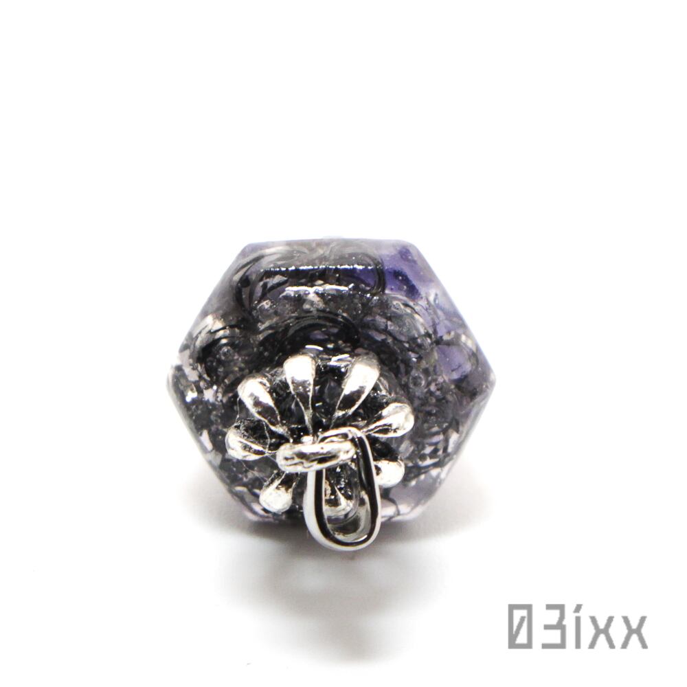 六角錐のオルゴナイトをペンダントトップに仕上げました。