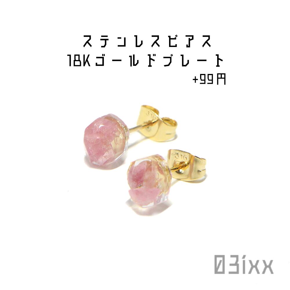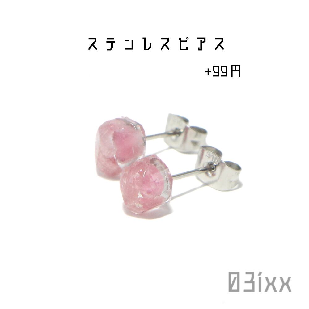 +99円にて、樹脂ピアスをステンレスピアスへ変更可能です。