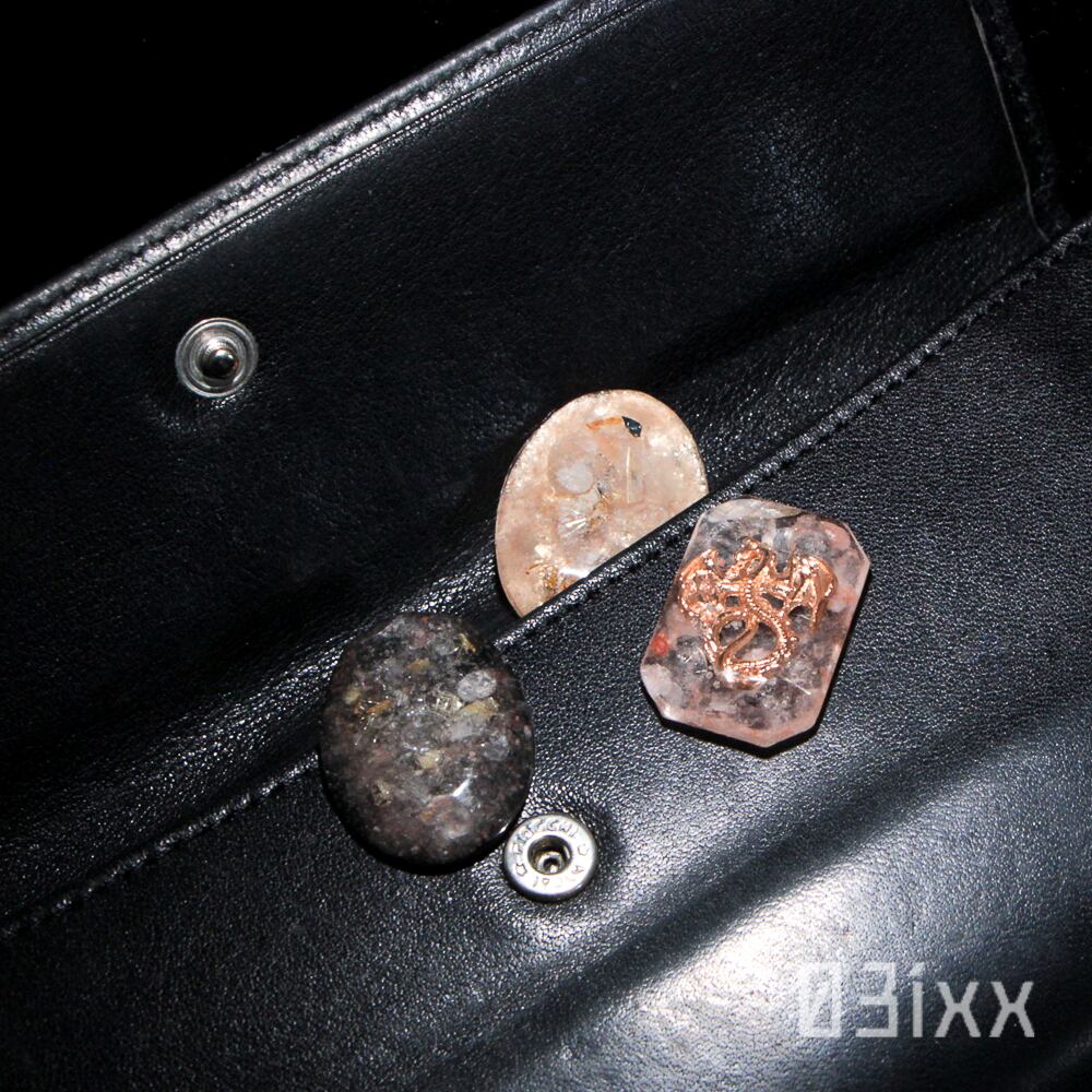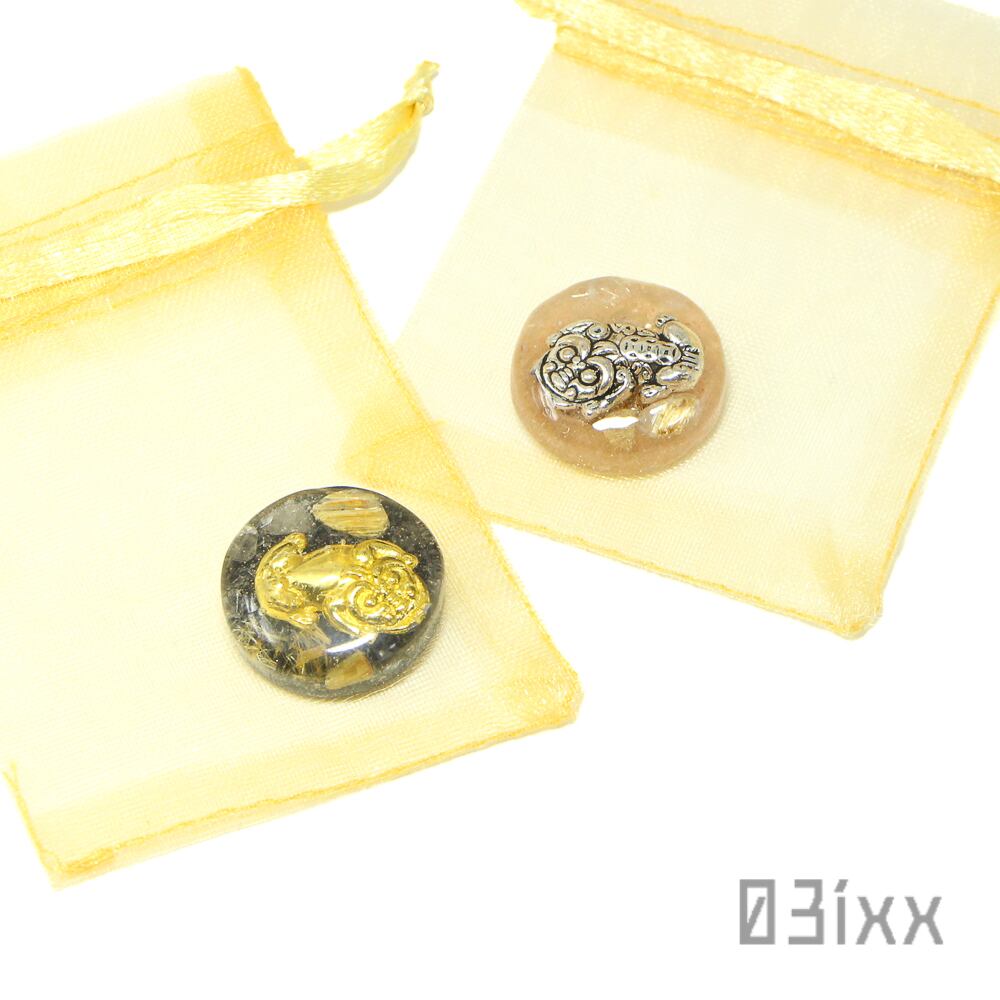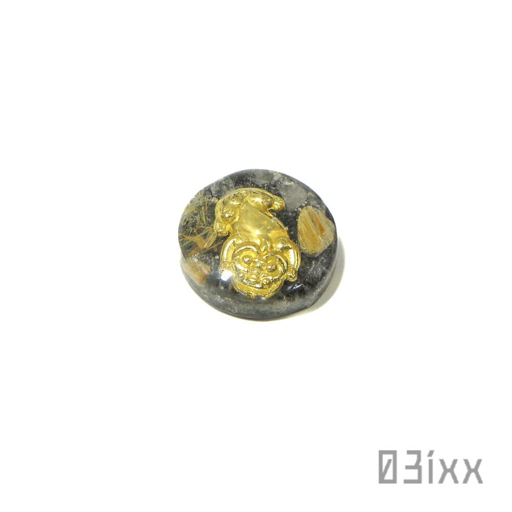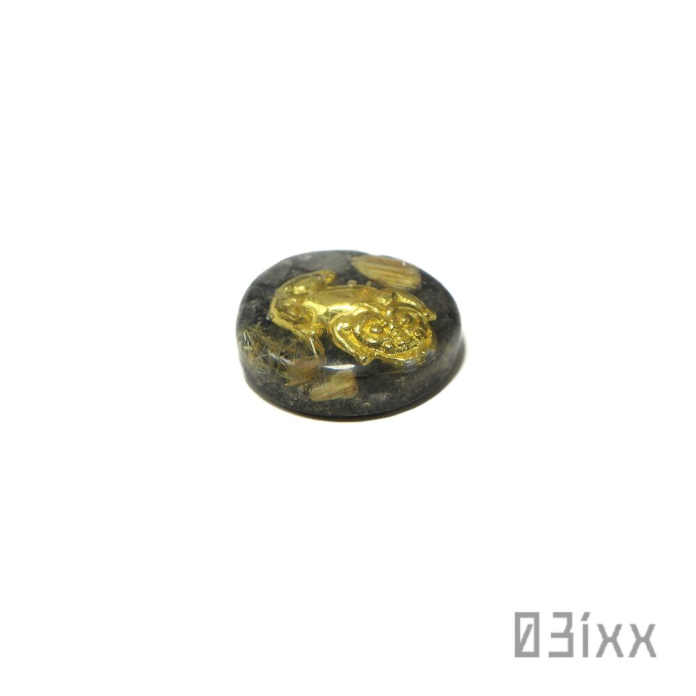 二層にして固め、上部に貔貅(ヒキュウ)チャームを封入し、