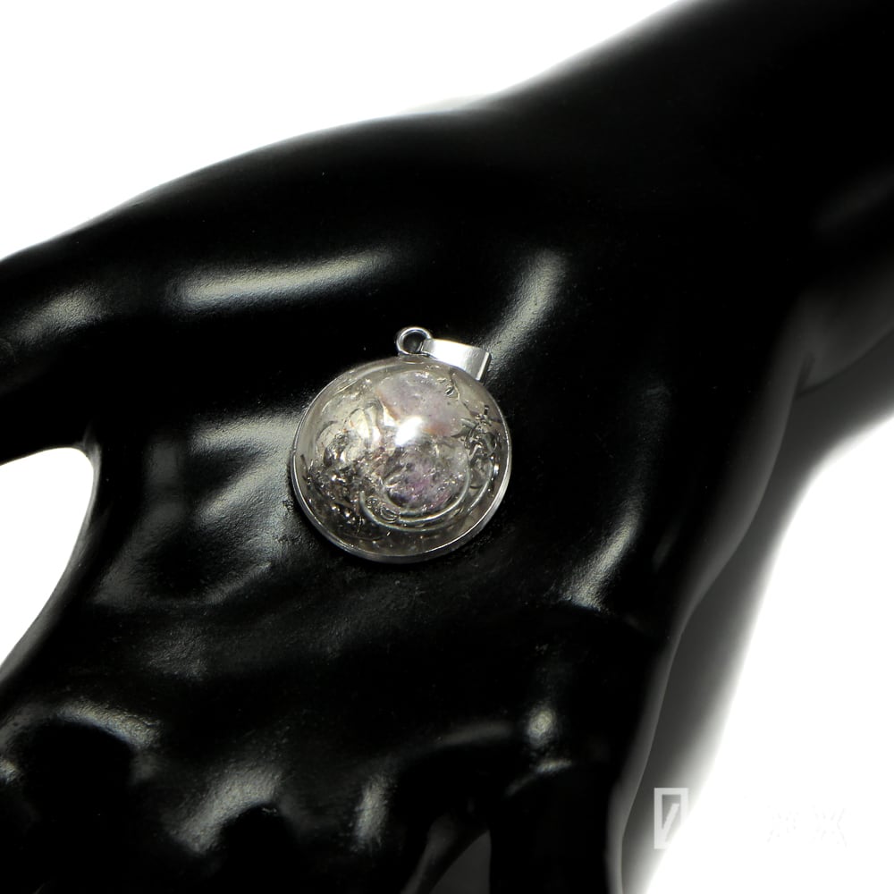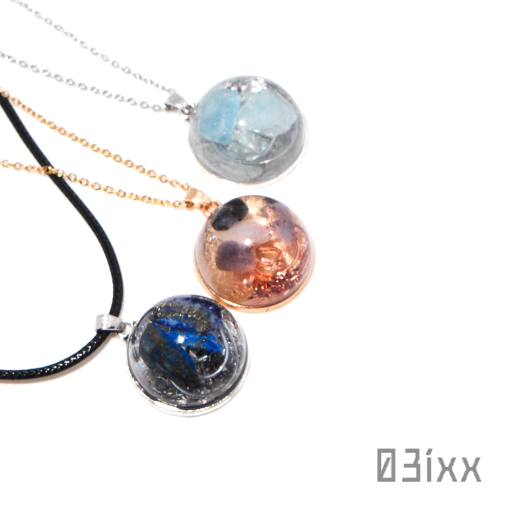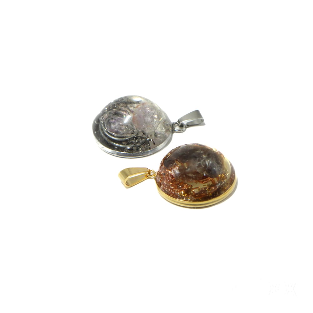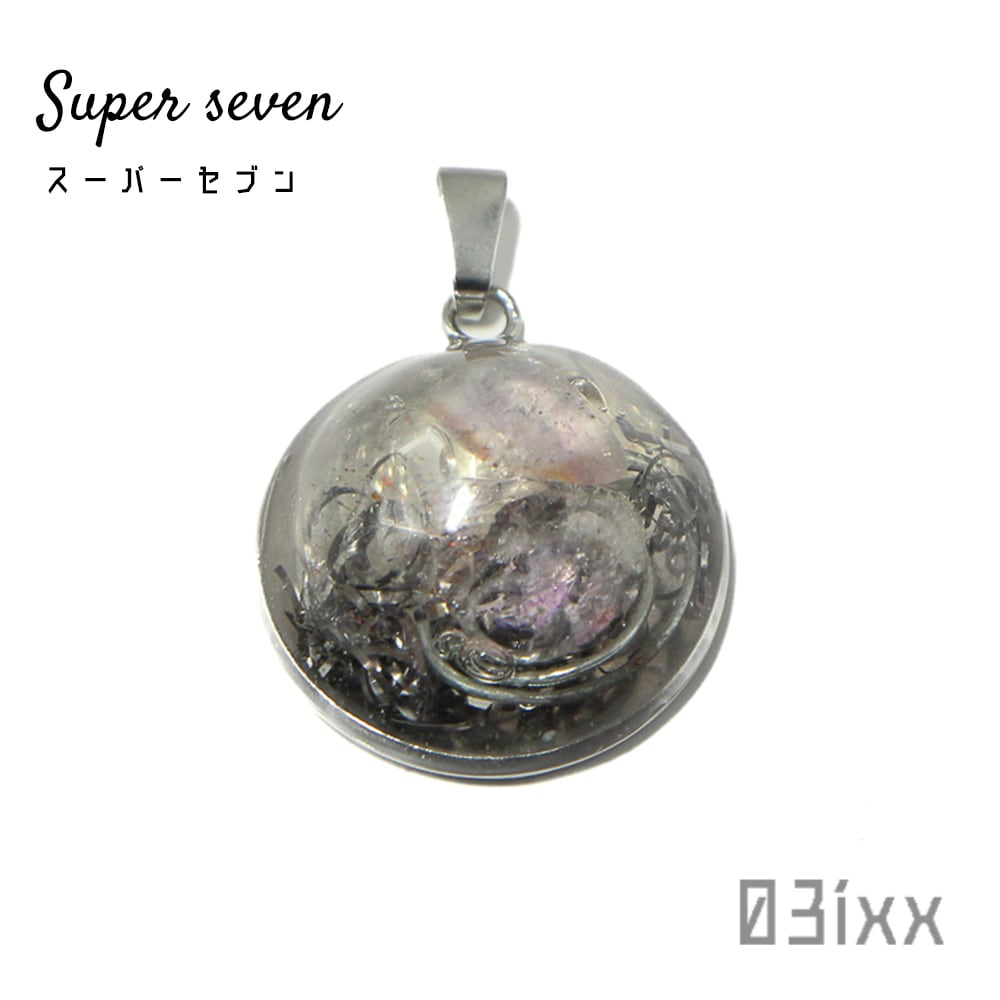 O011 半球オルゴナイト ペンダントトップ スーパーセブン セイクリッドセブン 天然石 調和の石 ステンレス