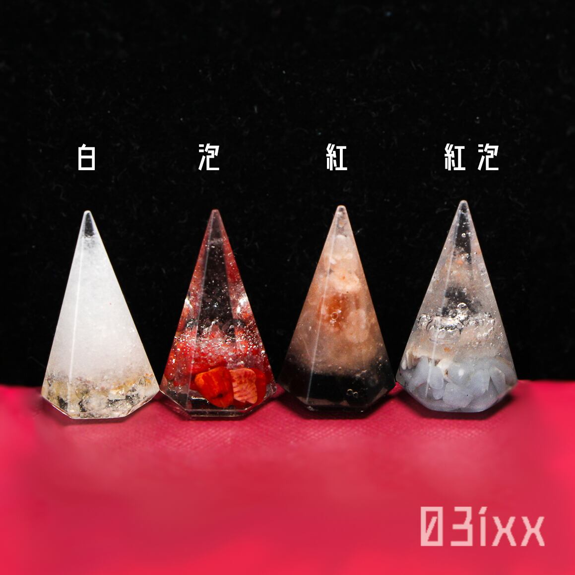 パキスタン産ピンク/ホワイト岩塩をレジンへ封入し、