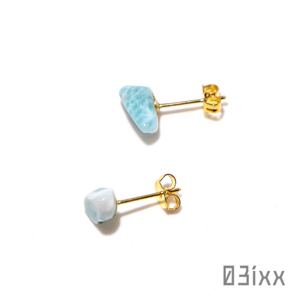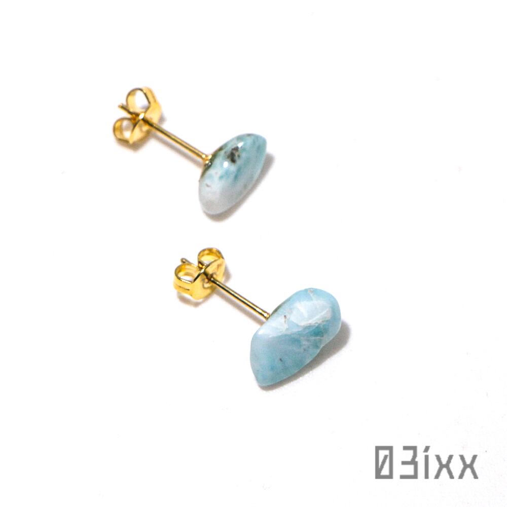 ピアス 天然石 ラリマー 曹珪灰石 アシンメトリー こつぶ ステンレスピアス