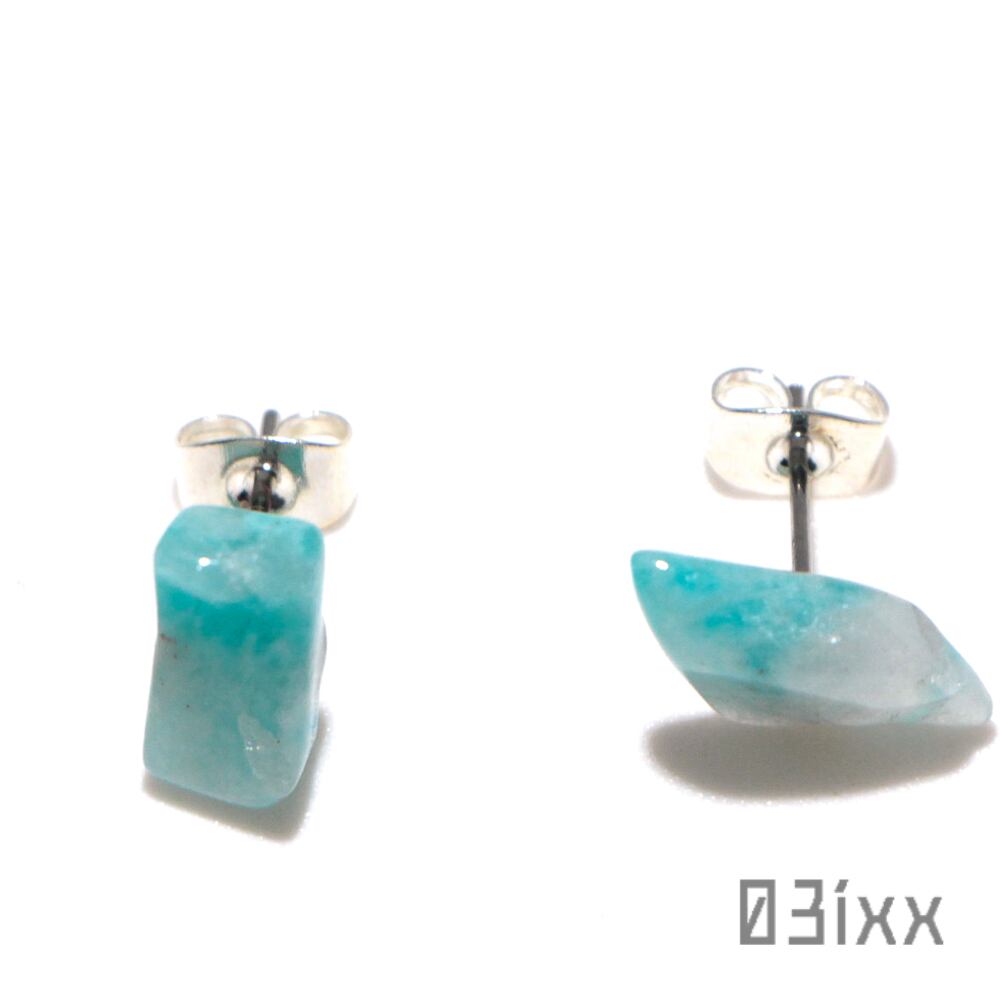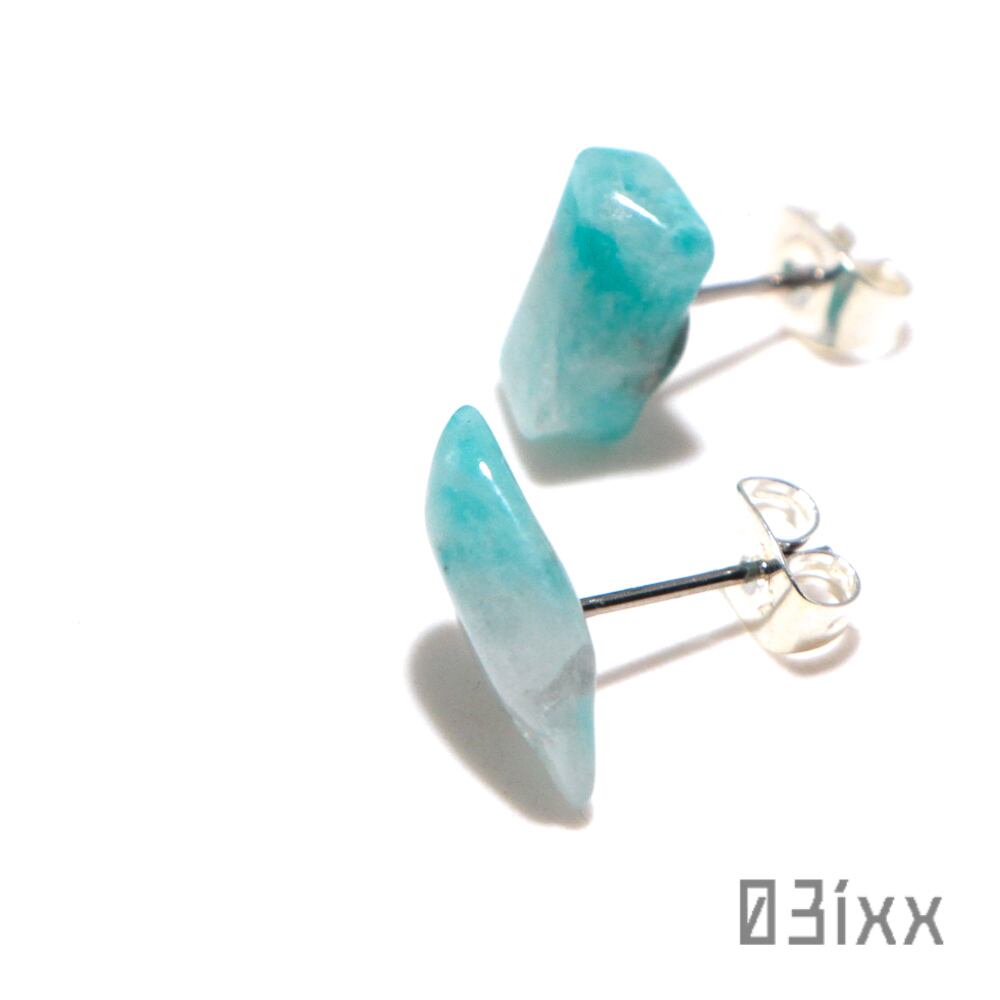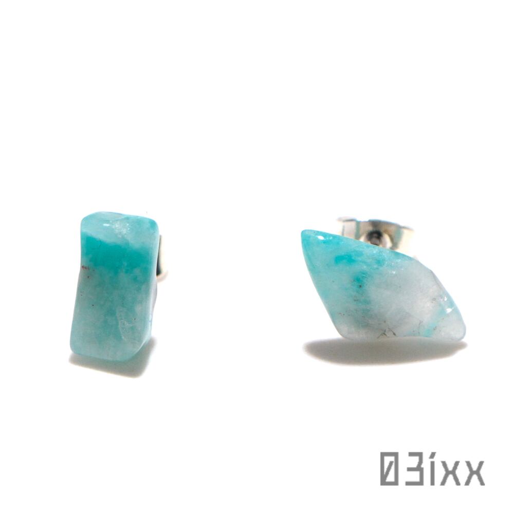 N020 ピアス 天然石 アマゾナイト 天河石 アシンメトリー ステンレスピアス