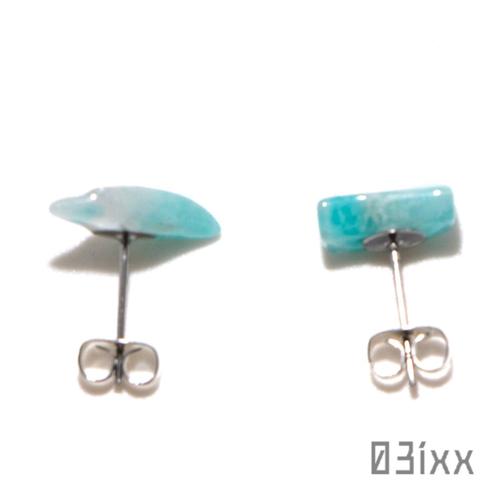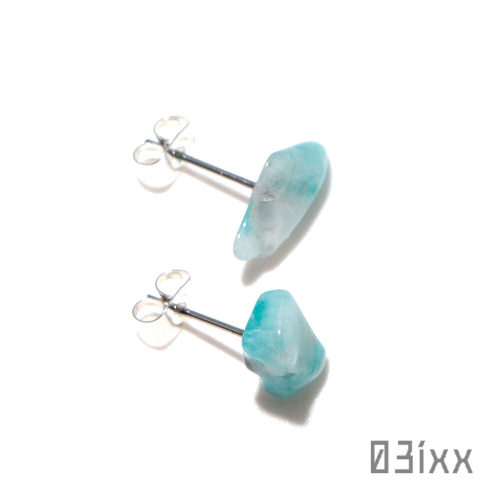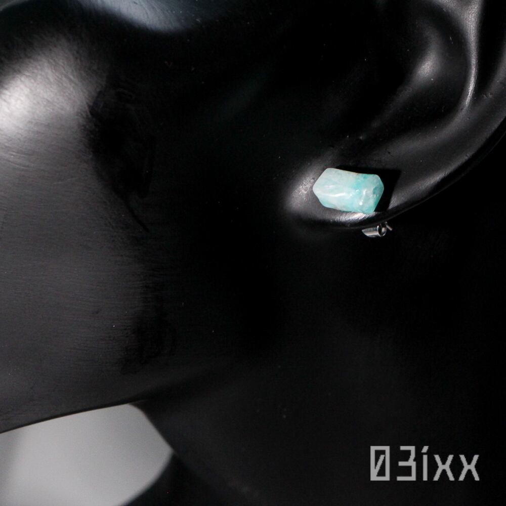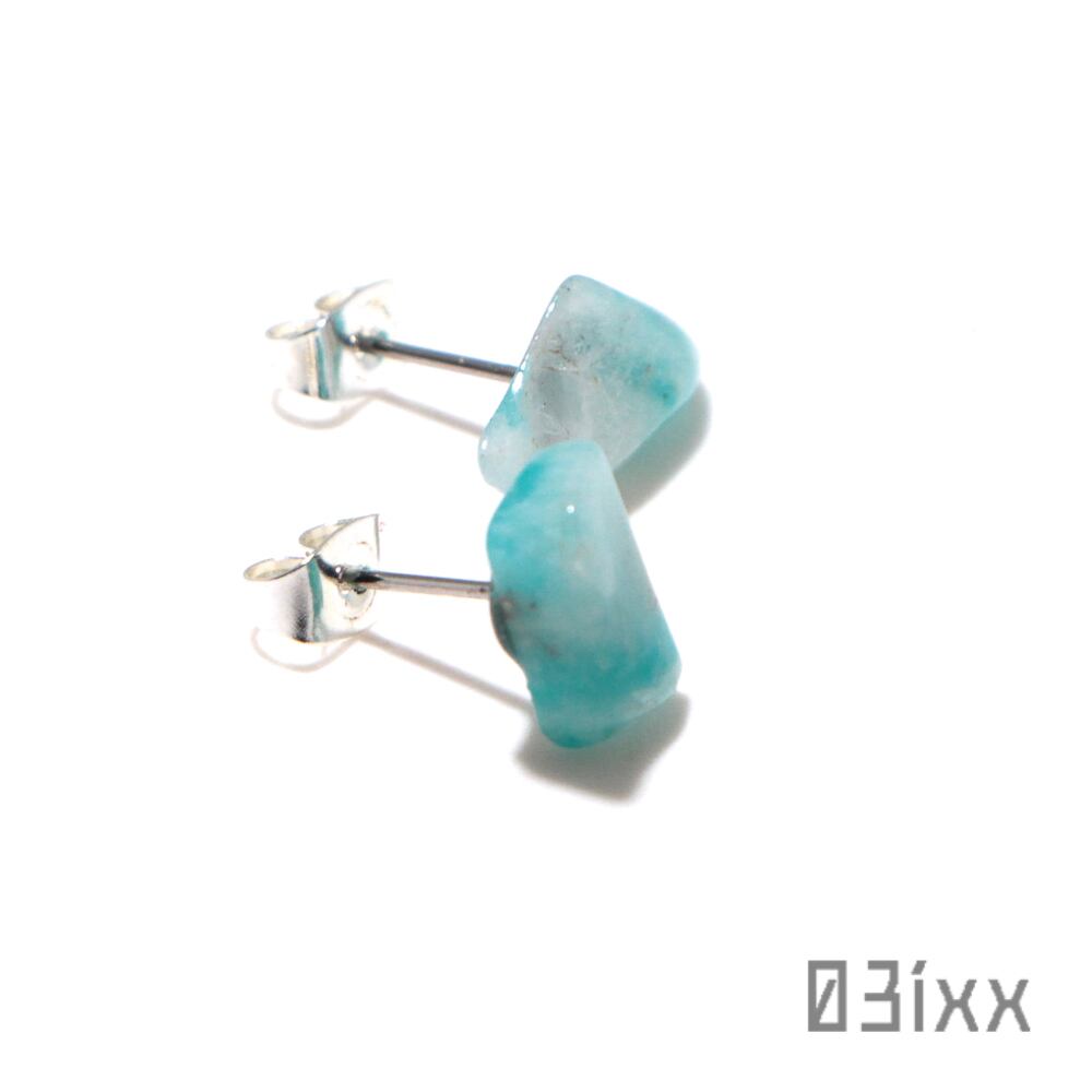 N020 ピアス 天然石 アマゾナイト 天河石 アシンメトリー ステンレスピアス