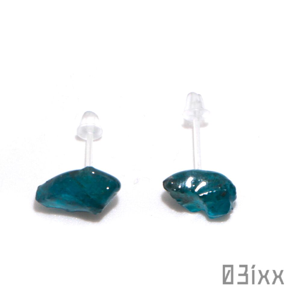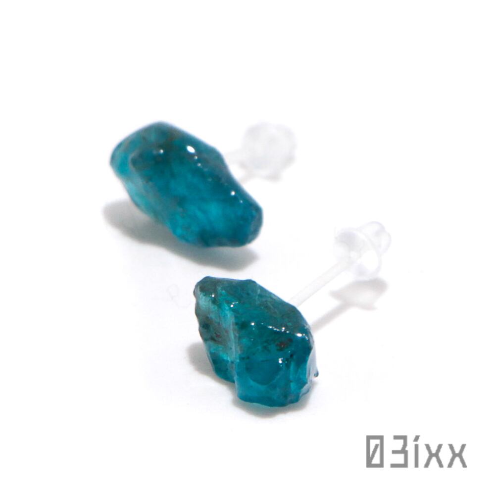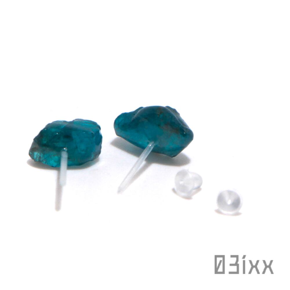 ピアス 天然石 ブルーアパタイト アシンメトリー 樹脂ピアス アレルギー対応