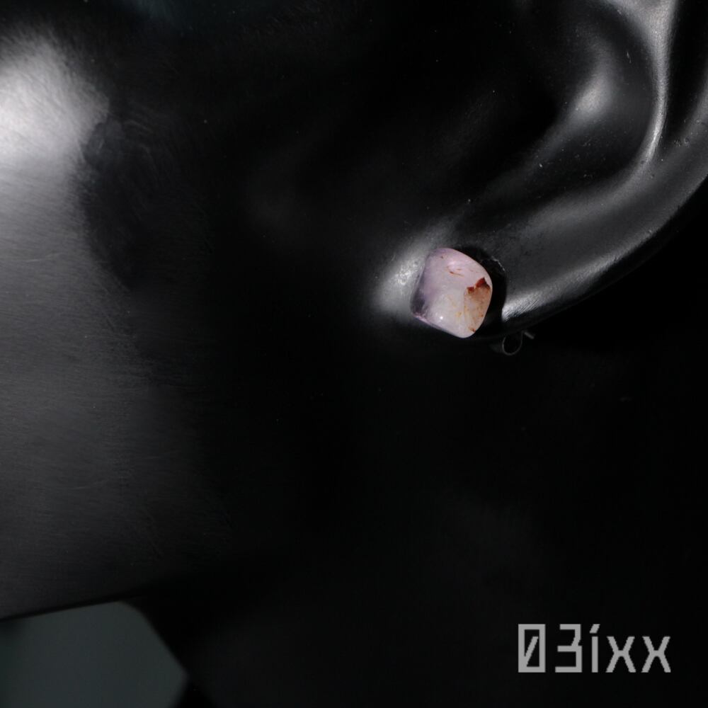 自然なかたちの艶やかな天然石を使用したアシンメトリーピアス