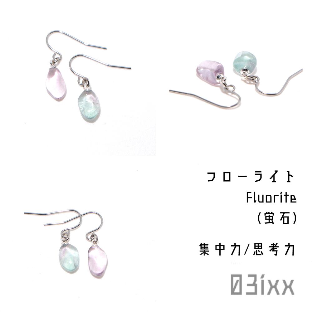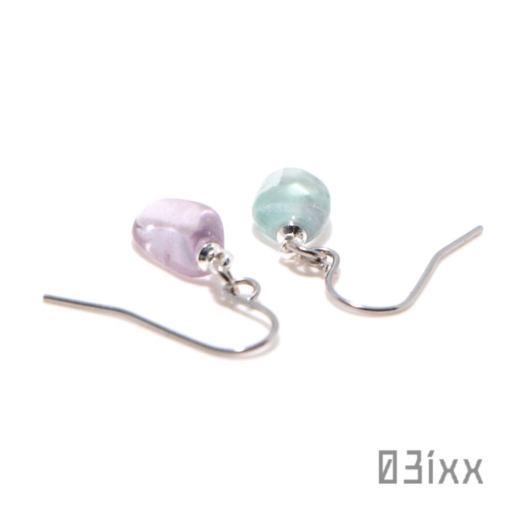 N043 ピアス 天然石 フローライト ステンレス フック アレルギー対応 ハンドメイド 03ixx