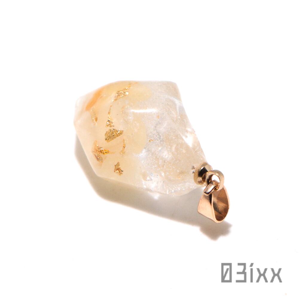 アラゴナイト(霰石)と金箔風ホイルを封入しております。
