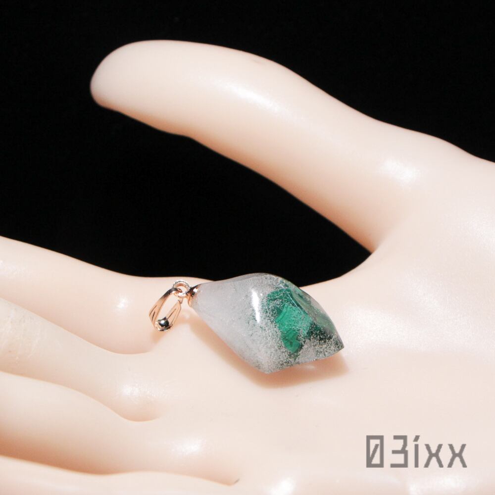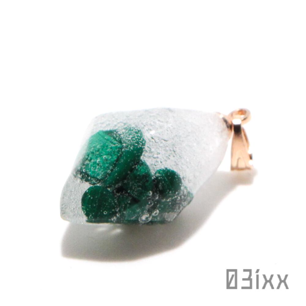マラカイト(孔雀石)を封入しております。