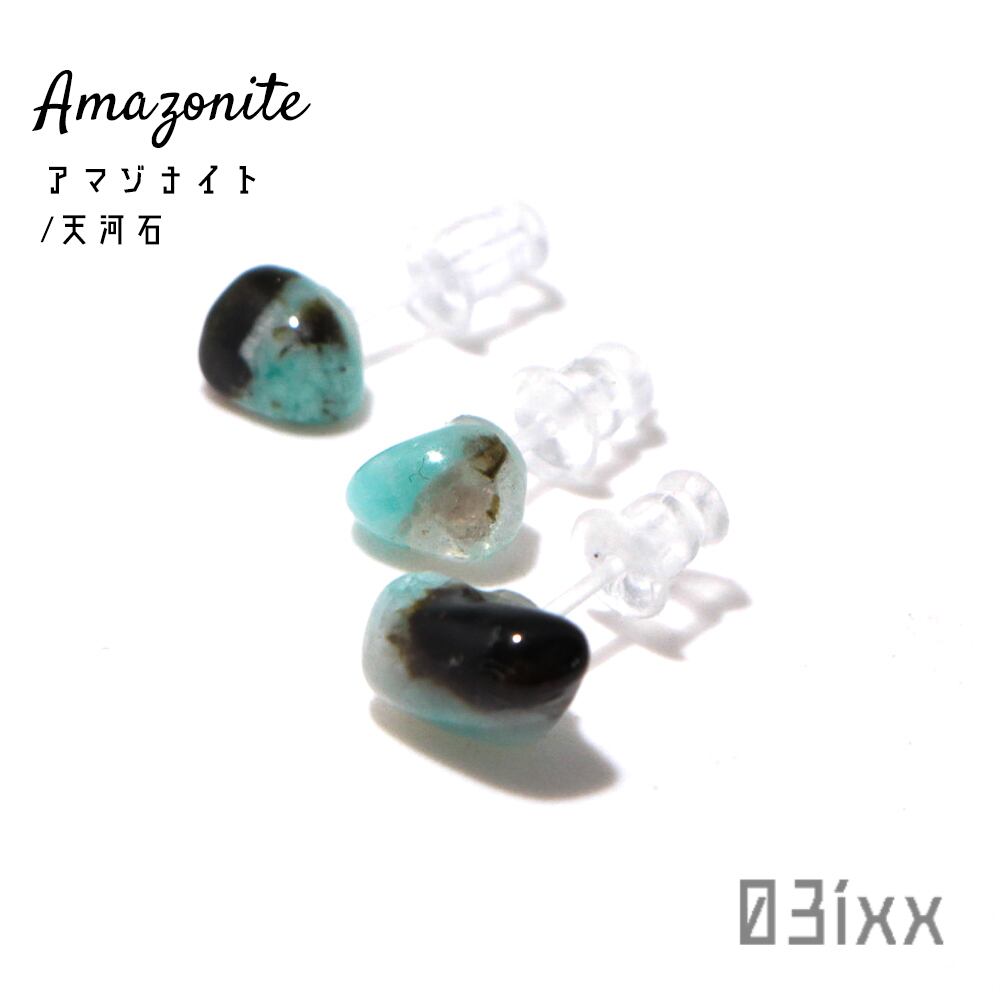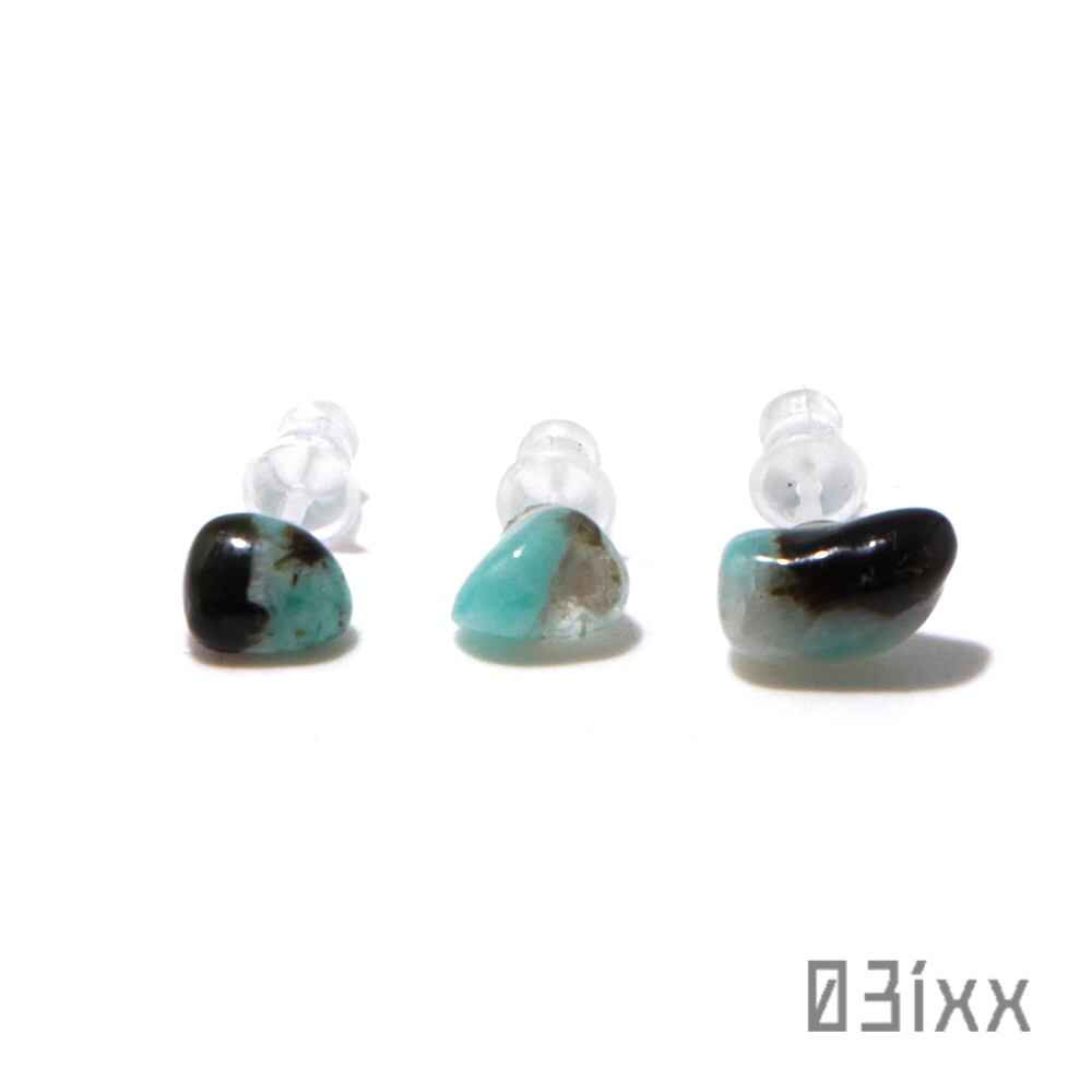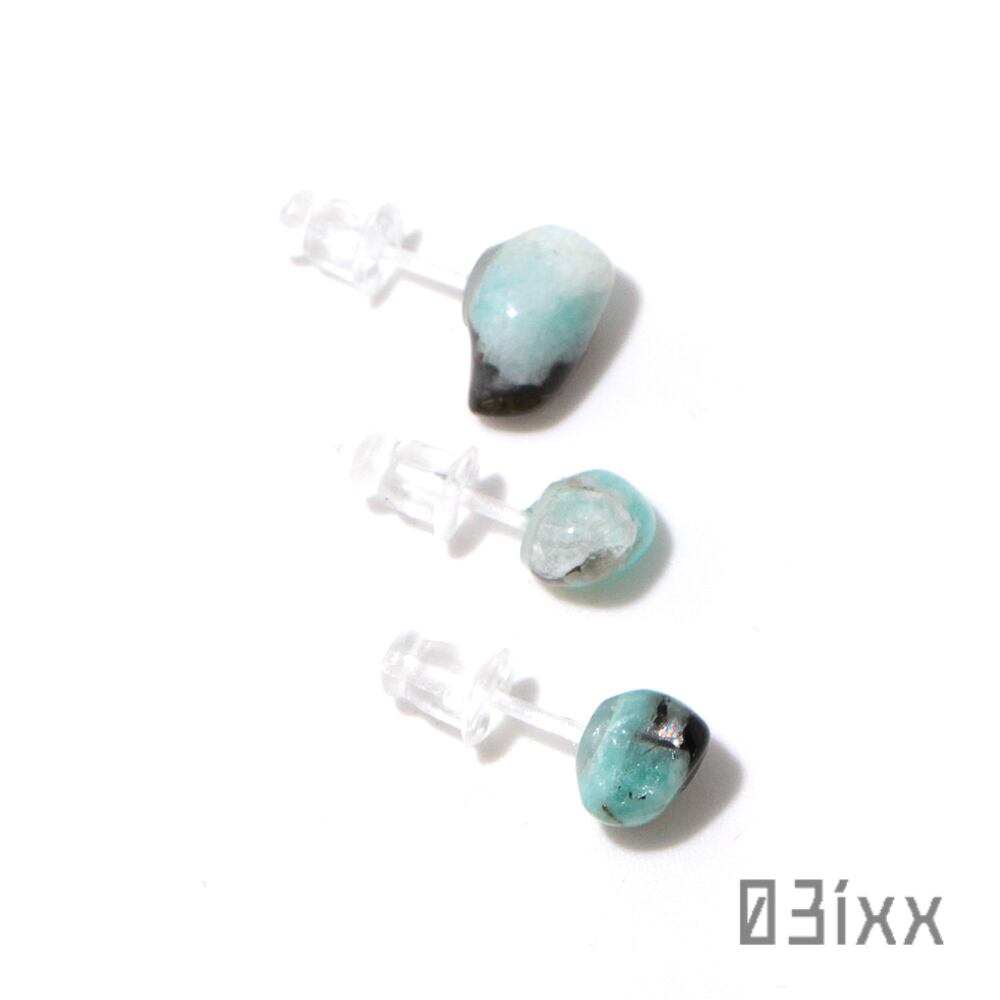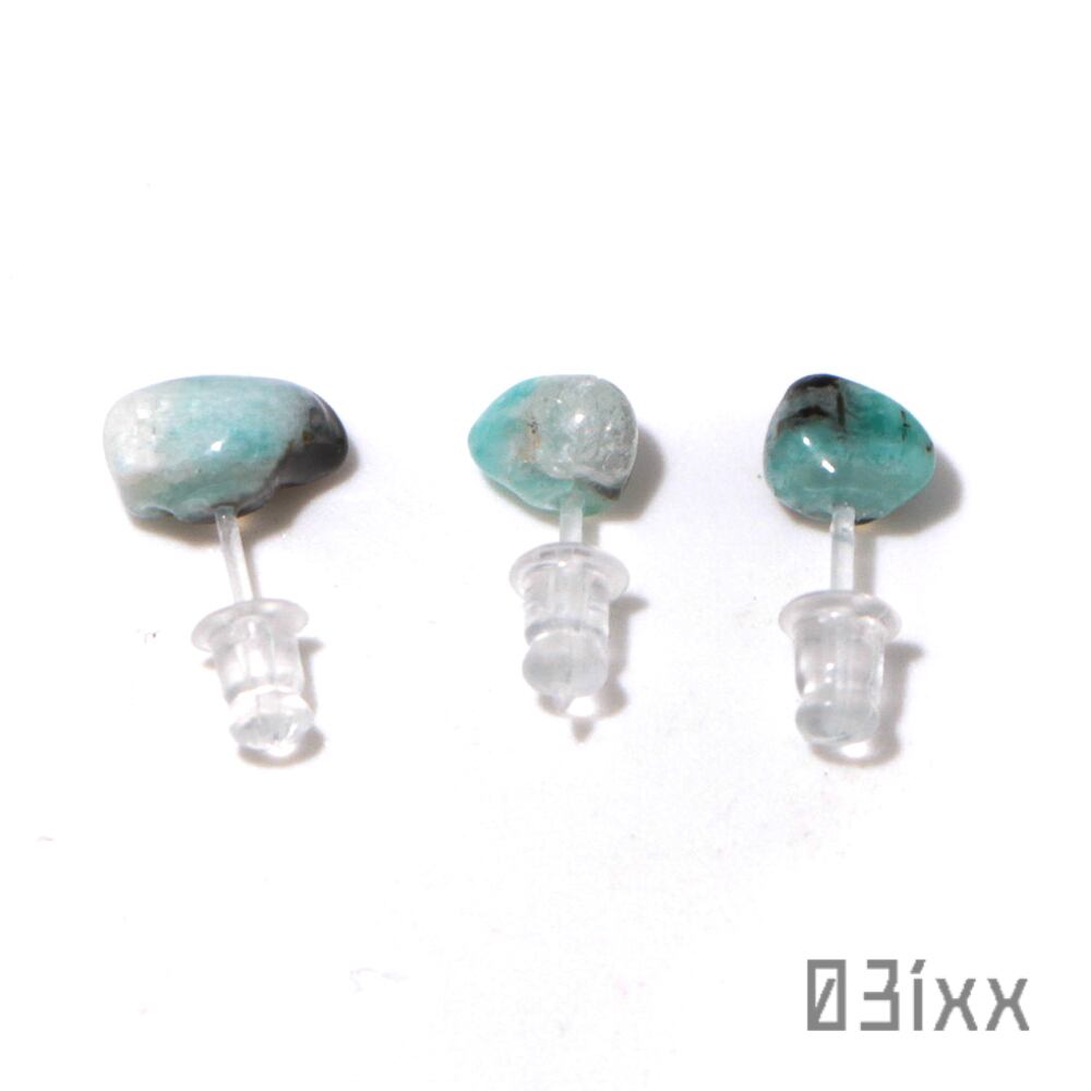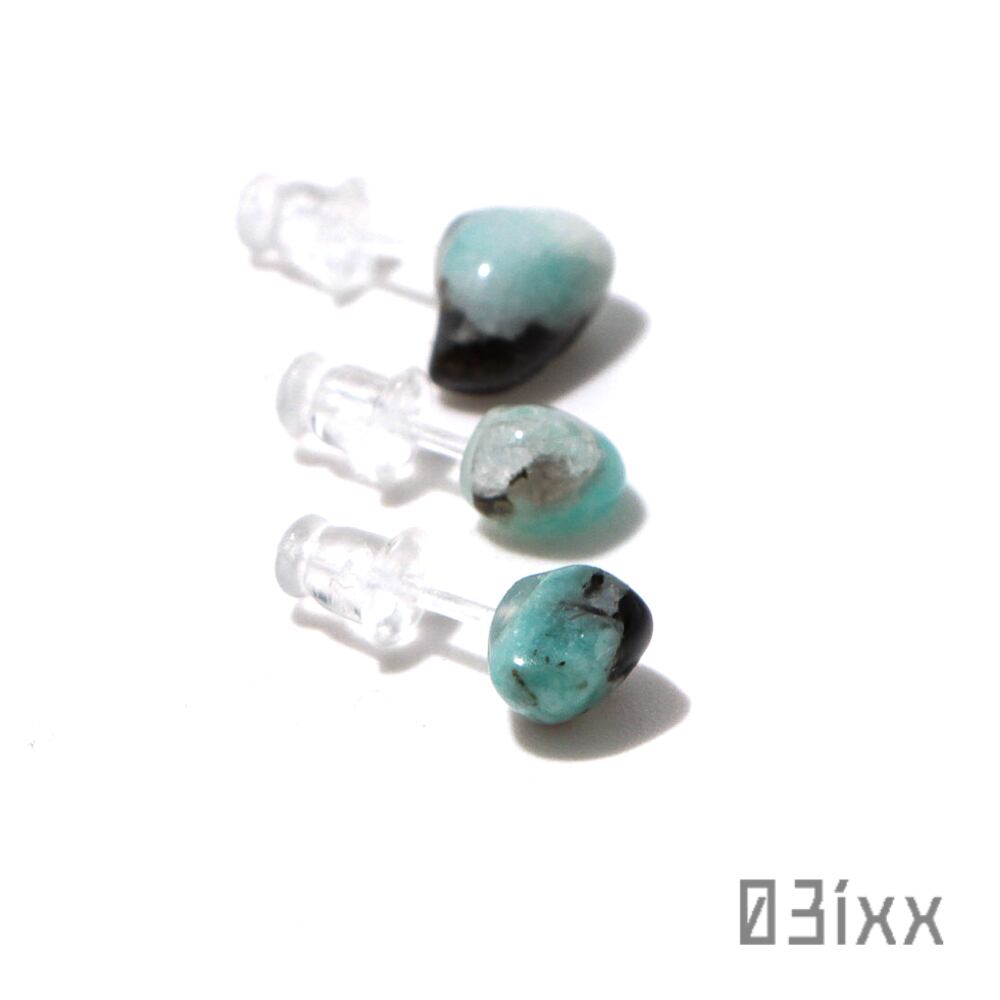 天然石標本 ピアス アマゾナイト 天河石 3粒セット 樹脂ピアス アレルギー対応