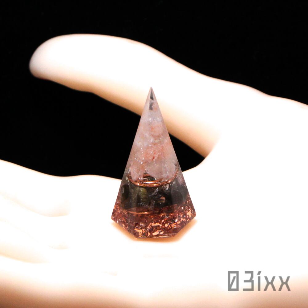 上部にパキスタン産ピンク/ホワイト岩塩を封入し、
