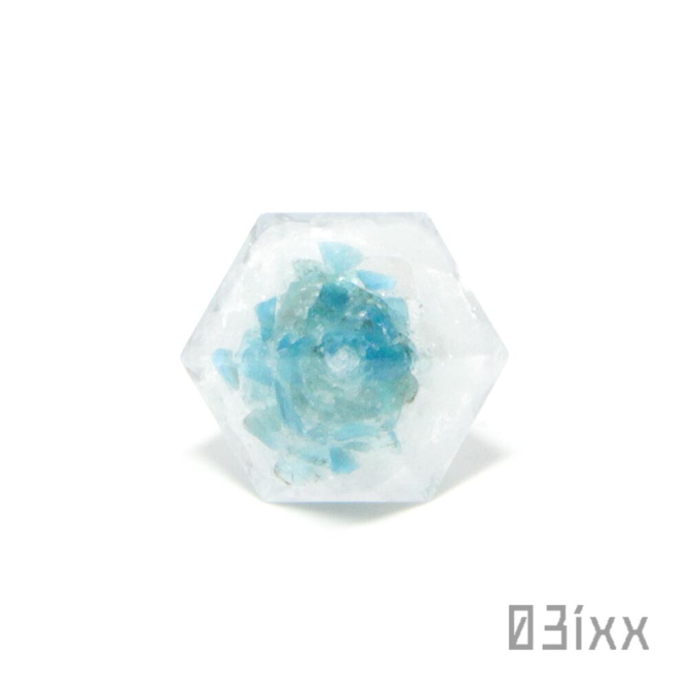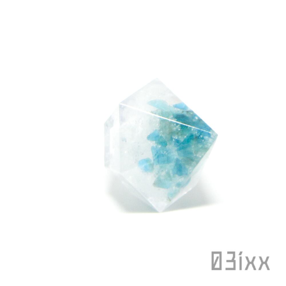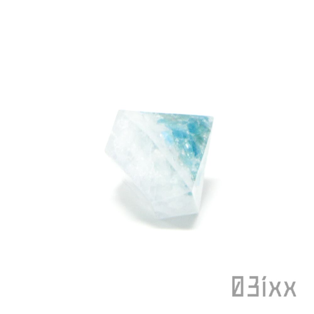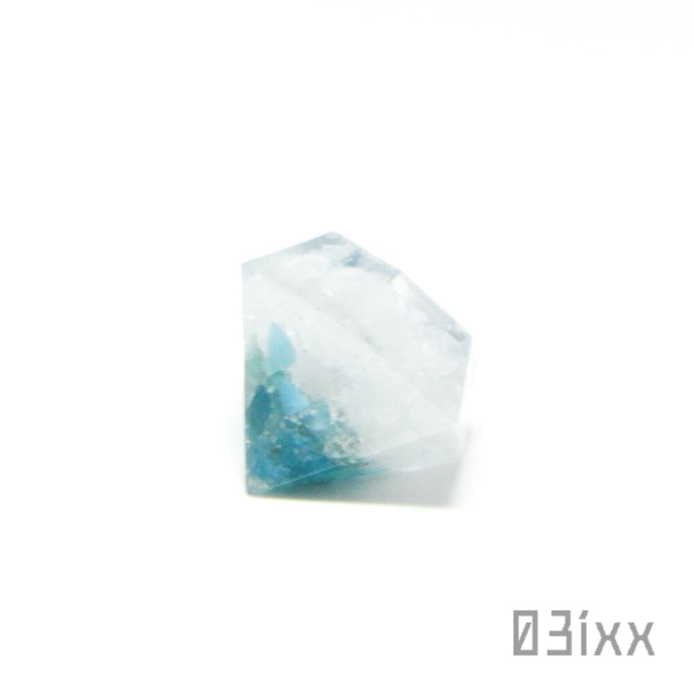 パキスタン産ホワイト岩塩をレジンで固めたダイヤ型盛塩の上部に天然石を封入し、