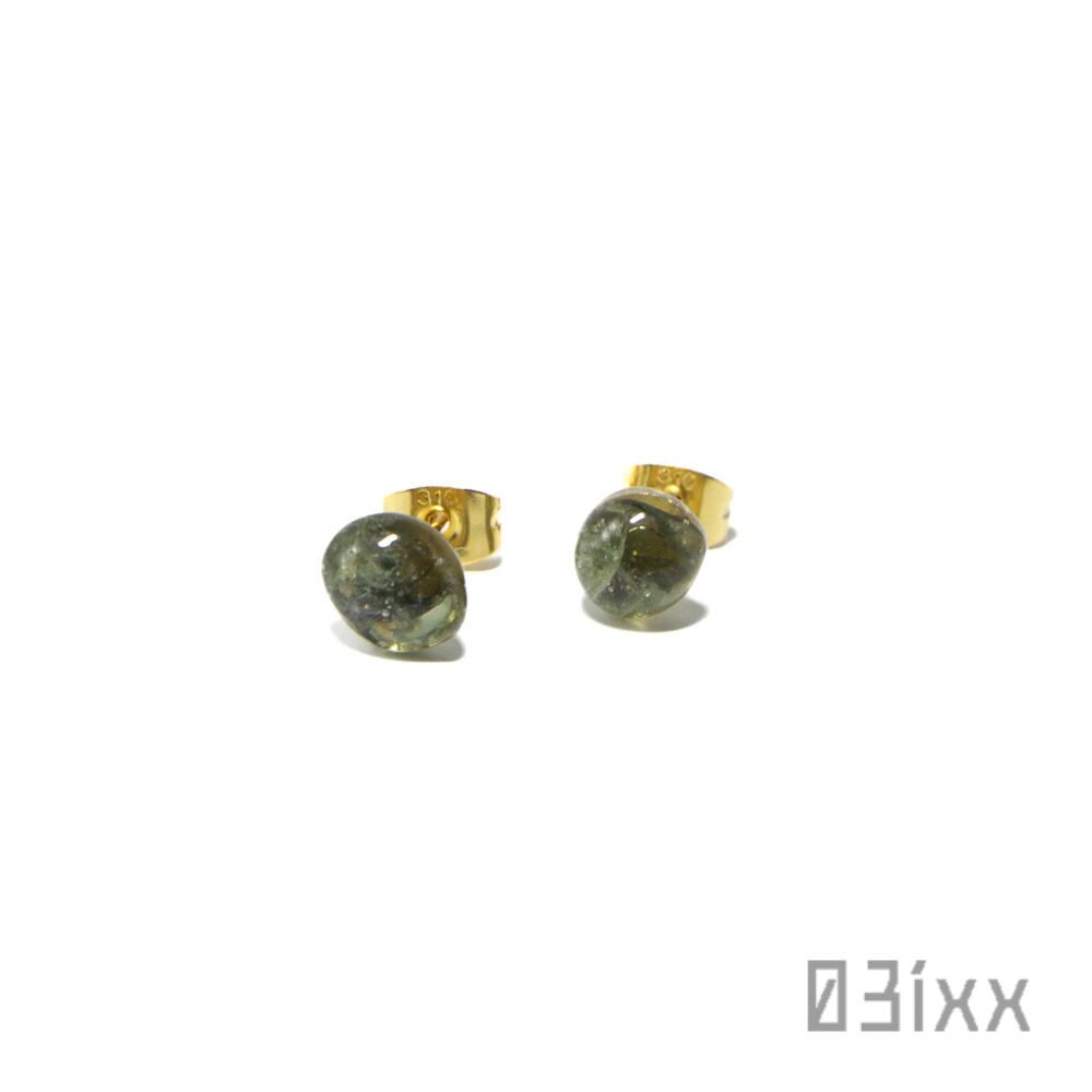 自然なかたちの艶やかな天然石を使用したアシンメトリーピアス
